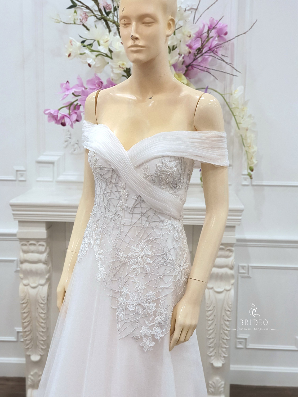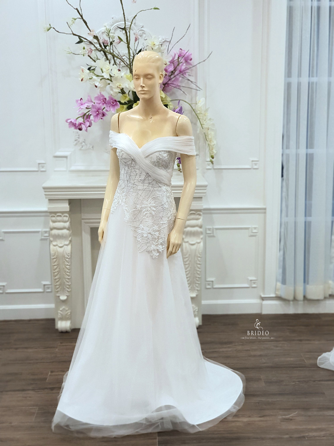 ชุดแต่งงานหรูเช่าพร้อมบริการปรับ size ปราณีตและเครื่องประดับ (สามารถปรับความยาวชุดได้ เพิ่ม accessories เช่นหางชุดได้)