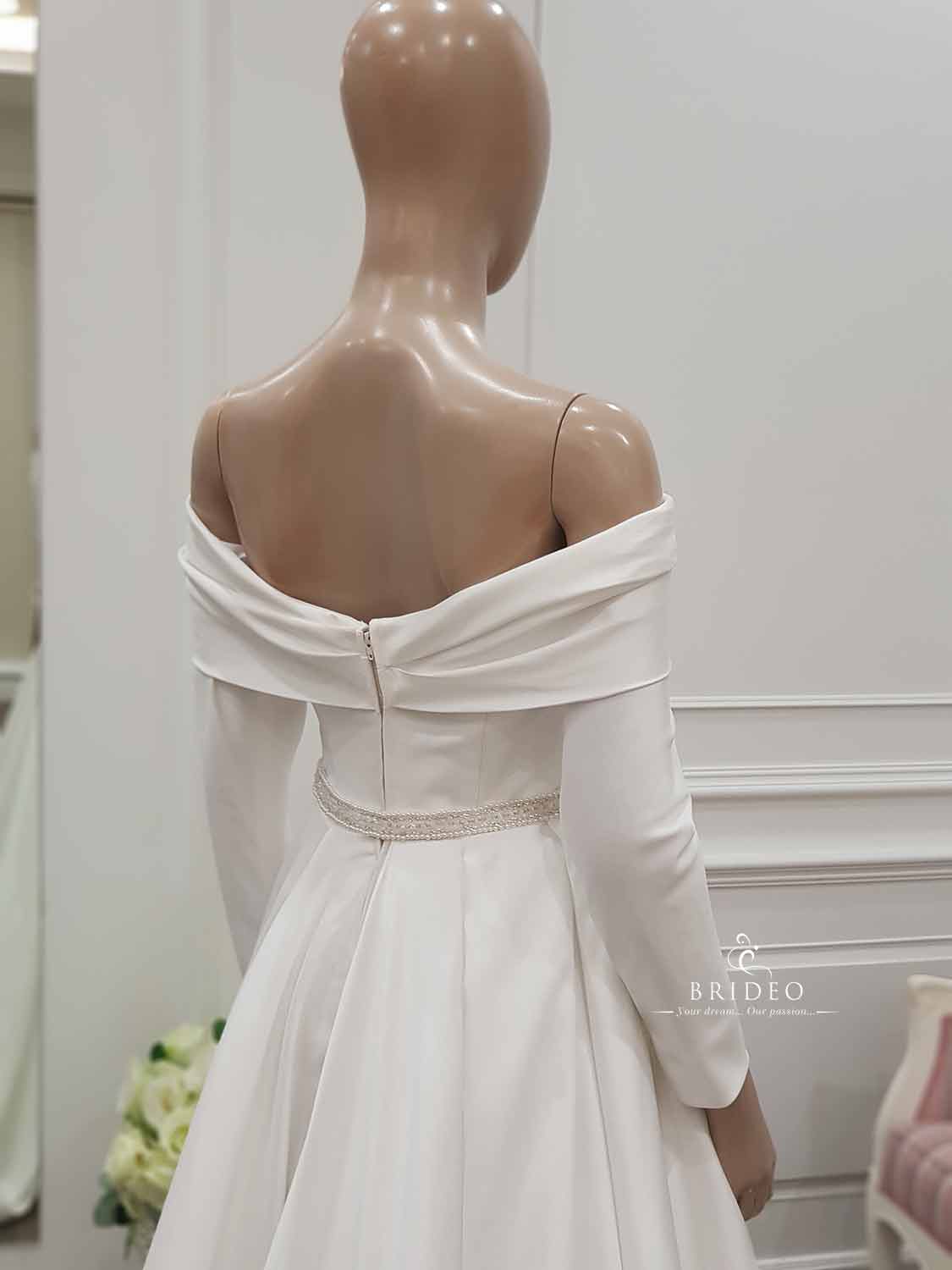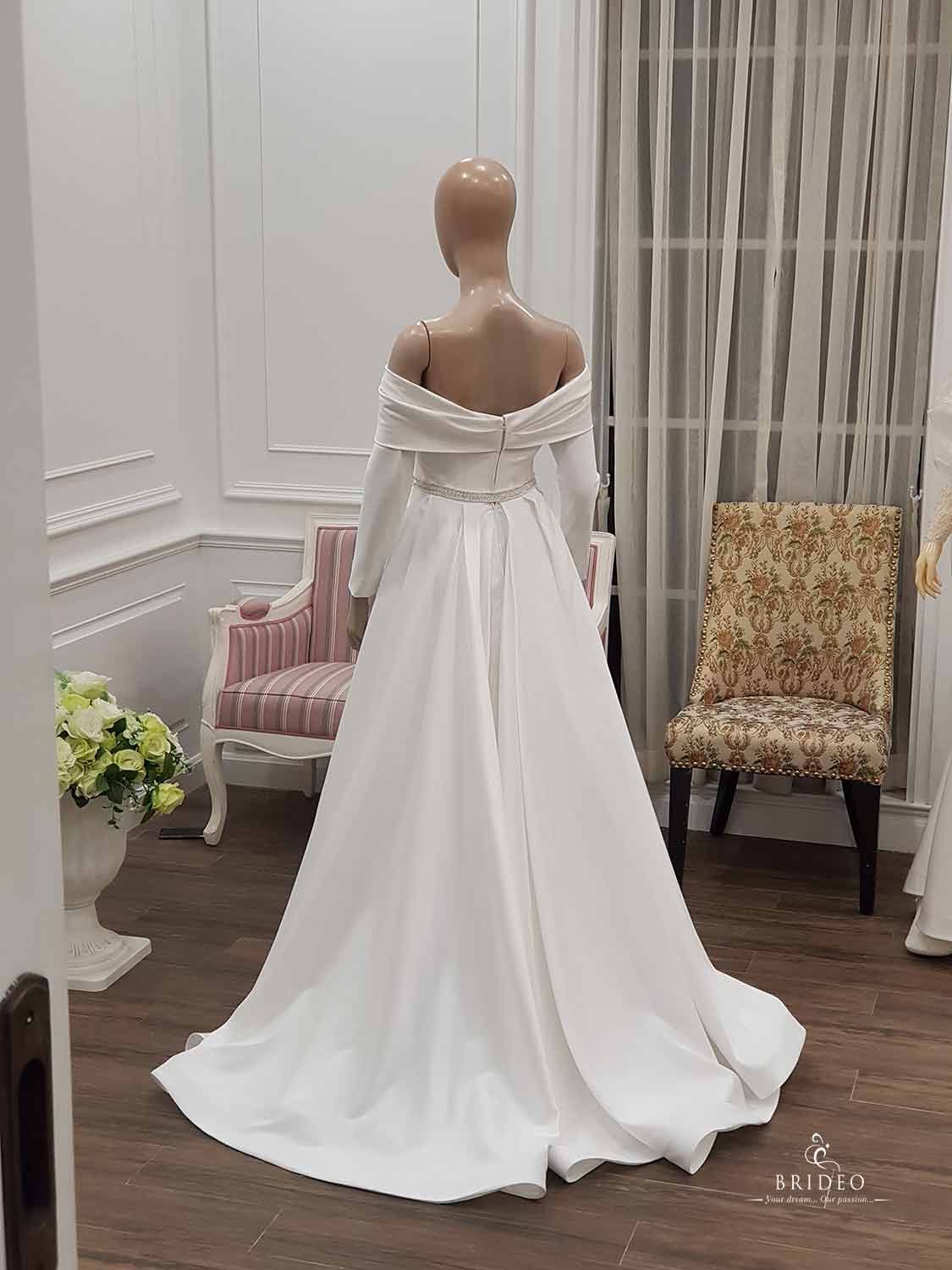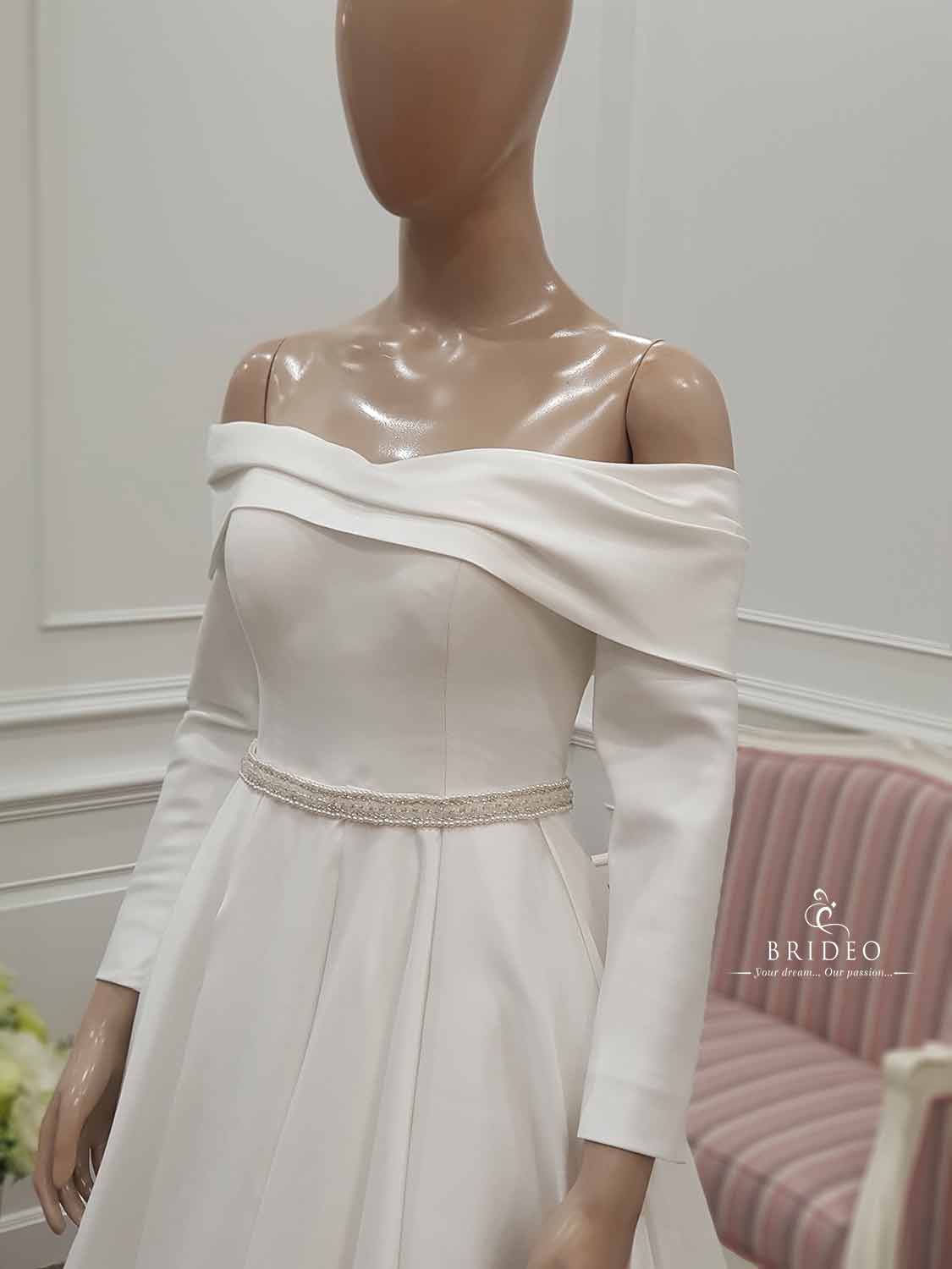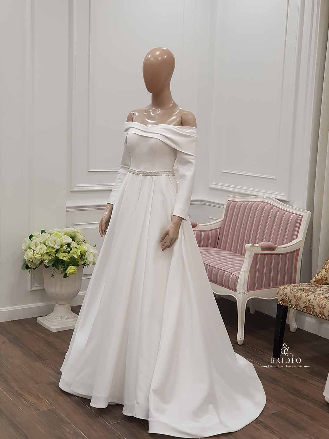 ชุดแต่งงาน minimal เรียบหรู แนะนำเจ้าสาวอวบน้อย (สามารถพลางต้นแขนได้) เช่าพร้อมบริการปรับ size ปราณีตและเครื่องประดับ