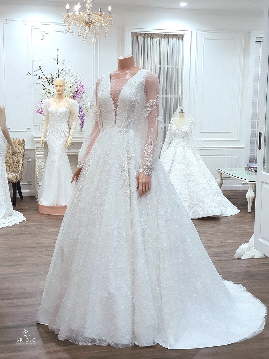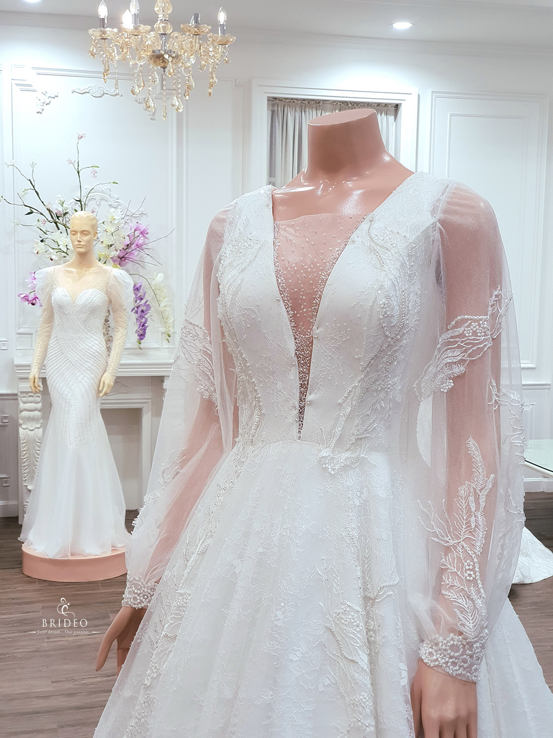 ชุดแต่งงานหรู เหมาะสำหรับเจ้าสาวอวบ ให้ลุคโปร่งบาง อำพรางส่วนเกินต้นแขน ชุดแต่งงาน: ชุด Memories