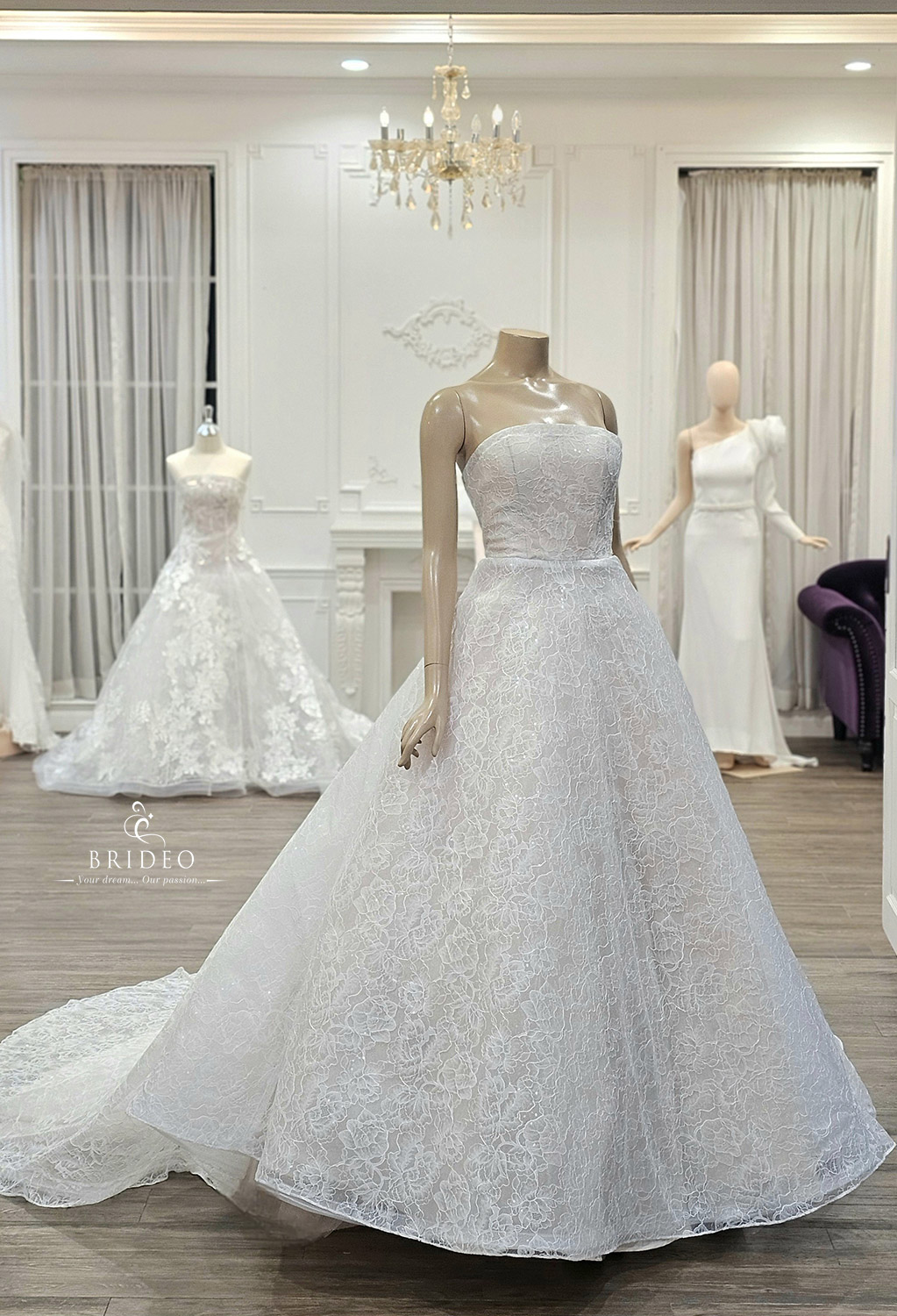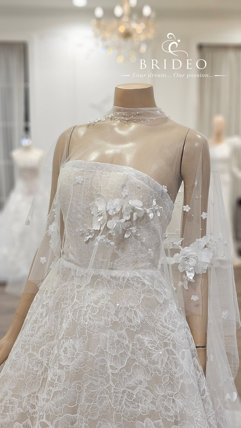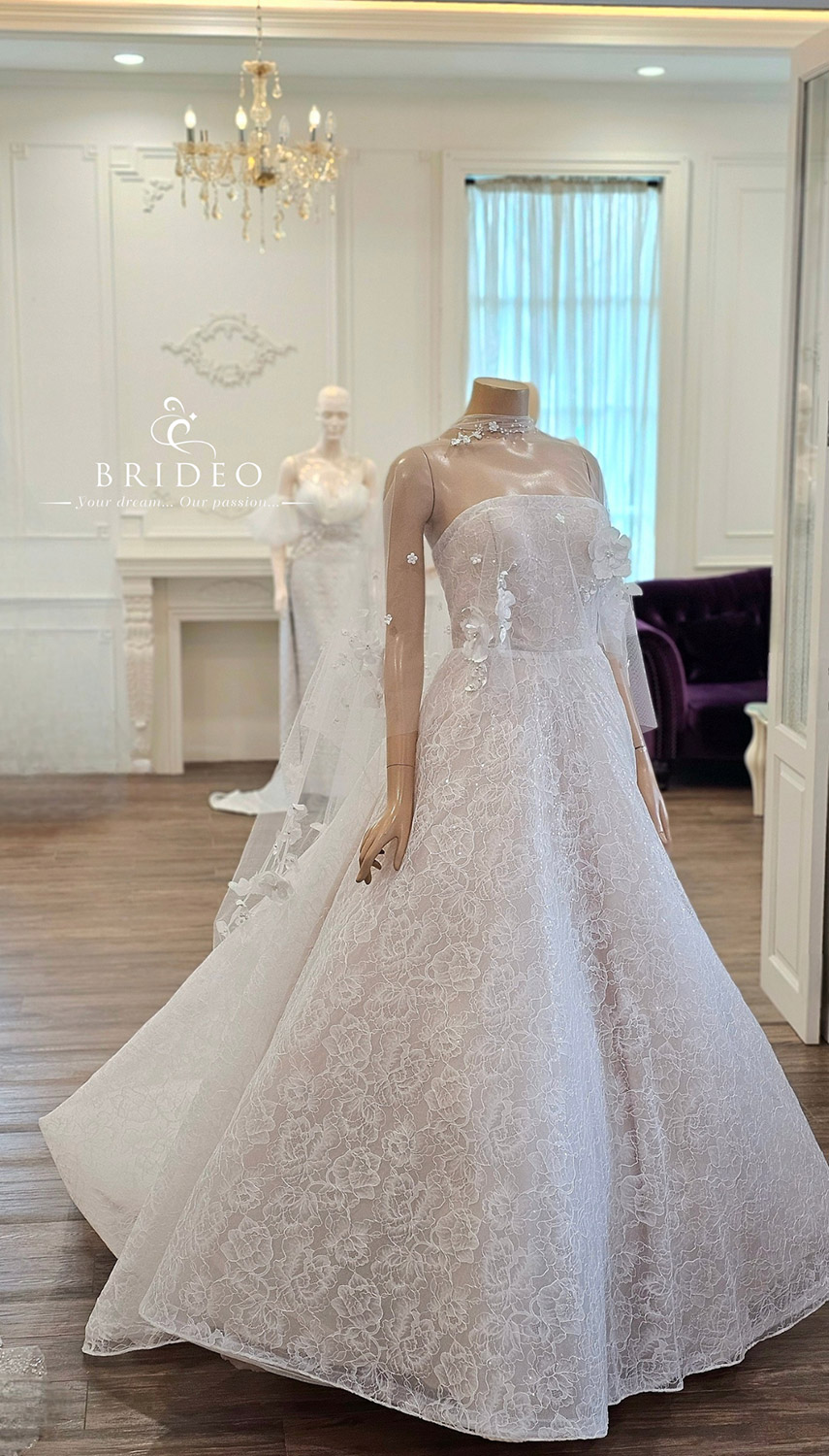 Specail Thanks Collection**: ชุดแต่งงานเกาะอกสีครีม ivory หรู โครงสร้างชุดสวย เดรสเบา ใส ยิ่งเดินยิ่งสวย ลูกไม้มีประกายวิบ ๆ จับคู่กับผ้าคลุมดอกไม้สามมิติ จัดวางบนริ้วผ้าทรูแสนหวาน แนะนำสำหรับเจ้าสาวทุกสีผิว เจ้าสาวผิวสีน้ำผึ้งออร่าสวยจับตา (โครงชุดแต่งงานสวยจับตาสามารถ mix & match กับ accesory ต่าง ๆ เช่น ผ้าทรูจับเดรปโอบไหล่ (กรณีเจ้าสาวกังวลต้นแขน), ถุงมือลูกไม้, โบว์ติดหลัง, พู่ฟูๆ )