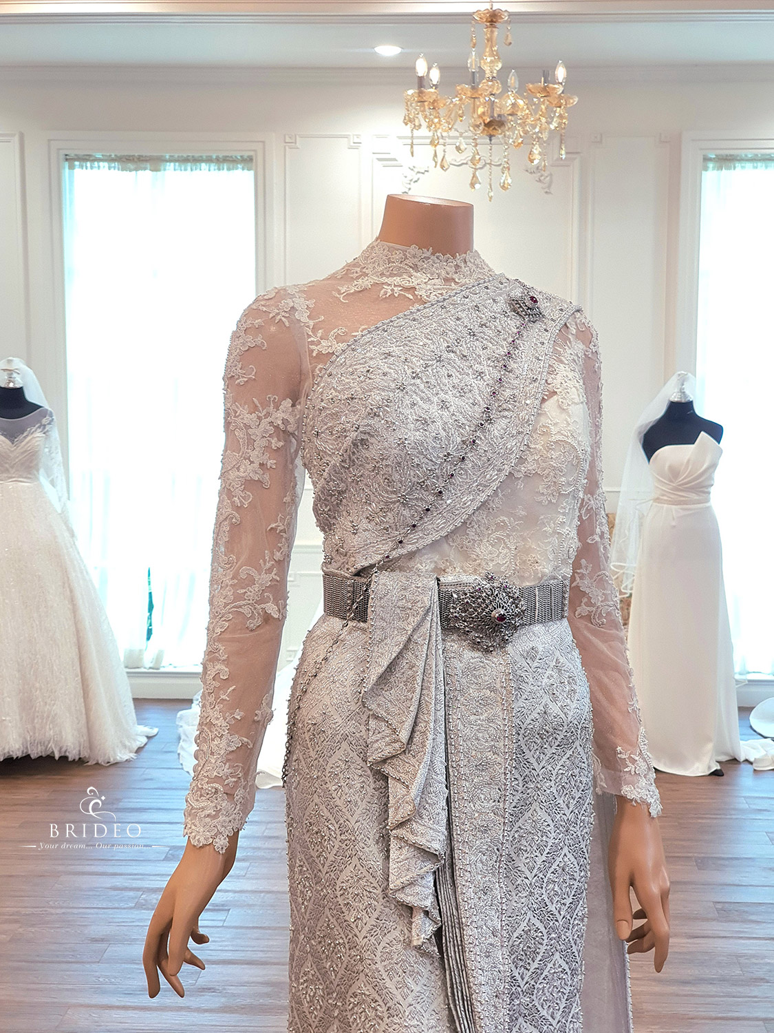ชุดตัดปราณีตสำหรับบริการเช่า พร้อมเครื่องประดับงานโบราณแท้(สวยหรูไม่ดูปลอม) และปรับ size โดยช่างแก้มืออาชีพ_ชุดเจ้าสาวจะได้รับการประกอบสำเร็จสวมใส่ง่ายสะดวกสบาย โดยไม่ทิ้งภาระให้ช่างแต่งหน้าเรื่องการดูแลสวมใส่