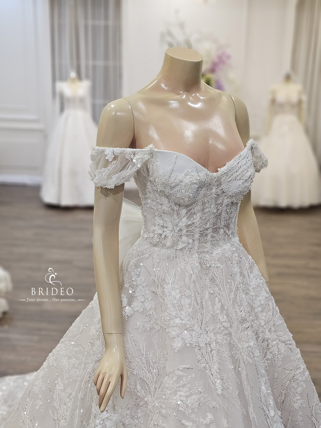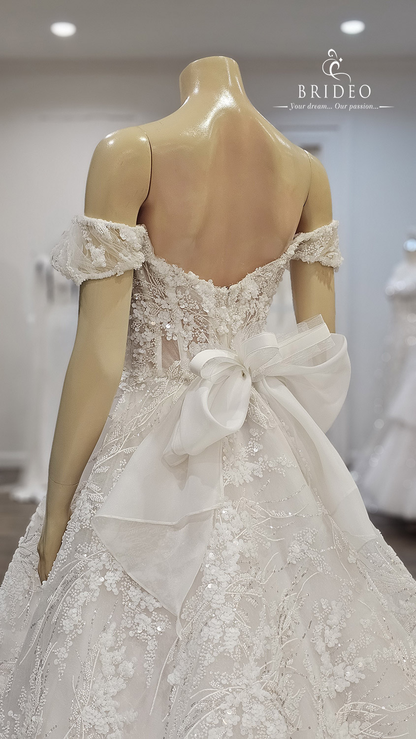 ชุดแต่งงานหรู ประดับเลื่อมคริสตอล คุณภาพสูง ลายปักอ่อนช้อย งดงาม สวยจับตา