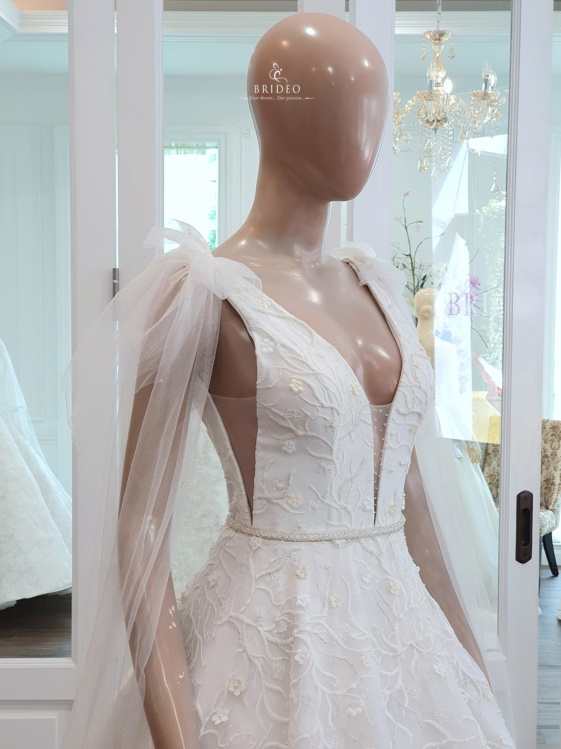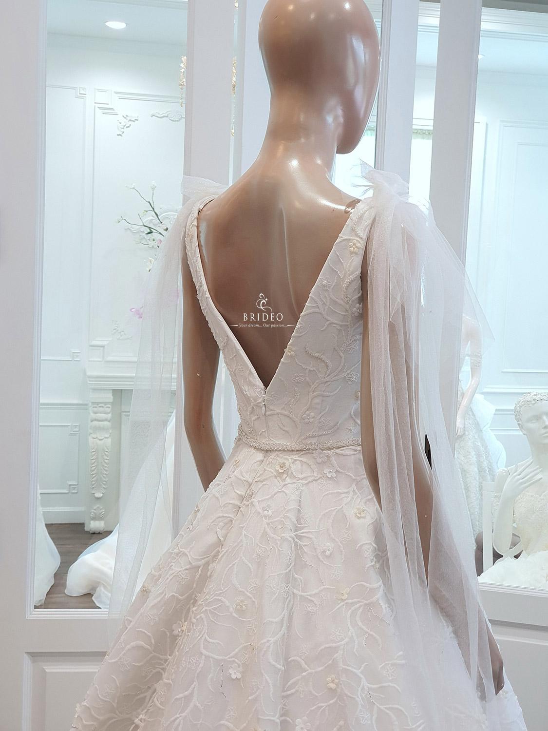 ชุดแต่งงาน ละมุน ละไม ซีทรูสวย พร้อมทรงกระโปรงสวย มีชีวิต ใส่เต้นรำได้ (ไม่ต้องมีคนจับชายกระโปรง) (ชุดเช่าพร้อมบริการปรับ size ปราณีตและเครื่องประดับ)
