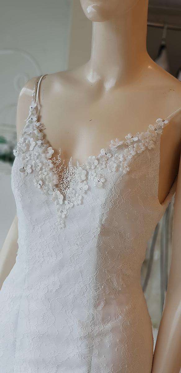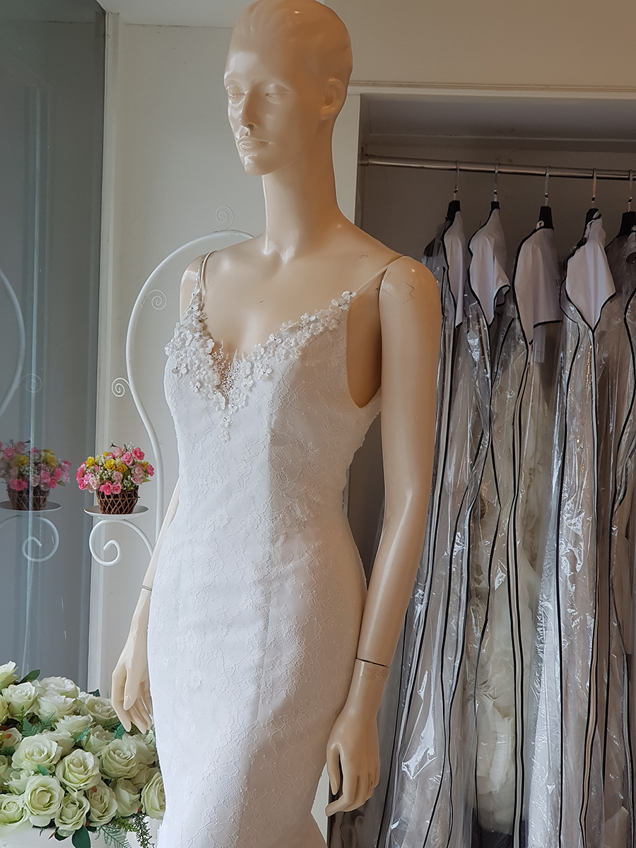 ชุดแต่งงานหรูทรงหางปลา สำหรับเจ้าสาวหุ่นเพอร์เฟค ชายกระโปรงไม่ยาว เน้นความคล่องตัวในงาน (ชุดเช่าพร้อมบริการปรับ size ปราณีต)