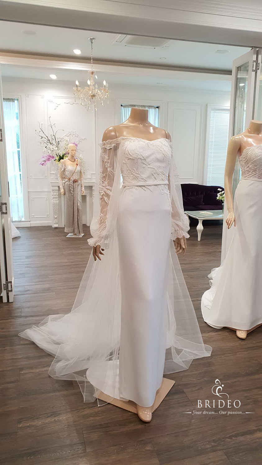 ชุดแต่งงานสไตล์ minimal เนื้อผ้าหรูทิ้งตัวสวย ตบแต่ง detail ลูกไม้น่ารัก พร้อมปรับดับชายละมุนชวนฝัน