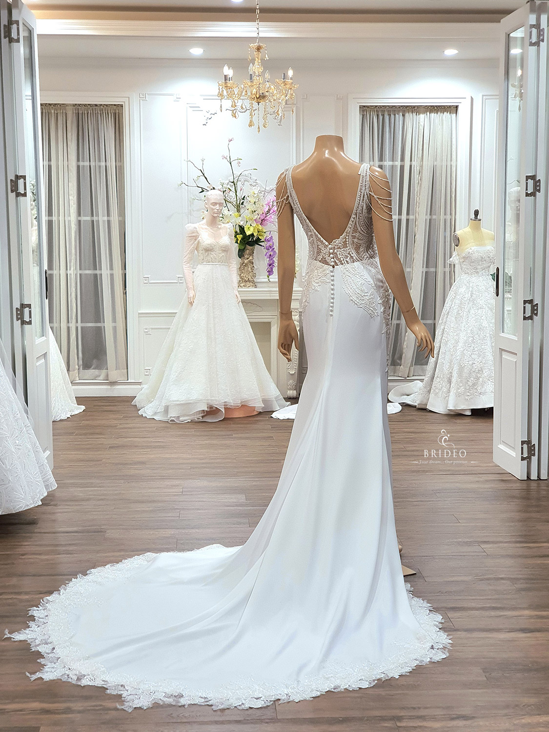 ชุดแต่งงานตัดเย็บปราณีต คัทติ้งสวย เนื้อผ้าหรู สำหรับบริการเช่าพร้อมปรับ size โดยช่างแก้มืออาชีพ (กรณีเจ้าสาวต้องการตัดซื้อเป็นเจ้าของเพิ่ม 15,000 บาท สั่งตัดล่วงหน้าก่อนงานแต่งงานอย่างน้อย 2 เดือน )