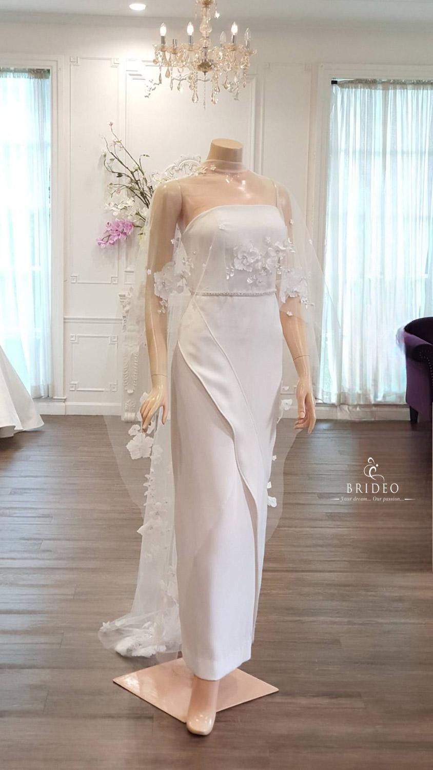 ชุดแต่งงานสำหรับบริการเช่า พร้อมบริการปรับ size โดยช่างมืออาชีพ เอวคอด อวดรูปอกสวย (กรณี tailor made วัดตัวตัดซื้อ 30,000 บาท_สอบถามรายละเอียด Line: @brideo มีแอดด้วย)