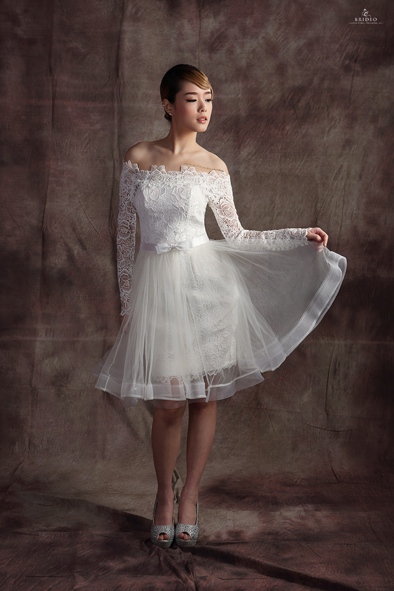 ชุดหมั้นขาว ลูกไม้หรู เช่าพร้อมบริการปรับ size ปราณีต