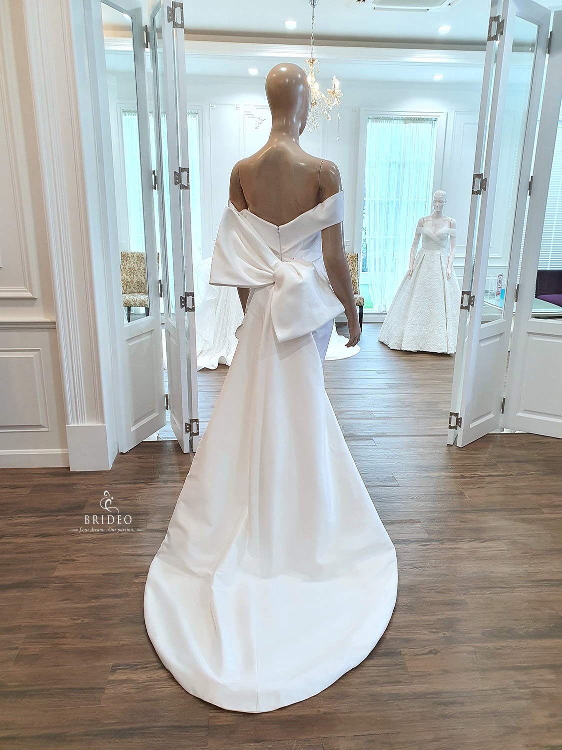 ชุดแต่งงาน minimal style ตัดออกแบบปราณีต สำหรับบริการเช่าพร้อมบริการปรับ size โดยช่างแก้มืออาชีพ (สามารถวัดตัวตัดซื้อได้ในราคา 18,500 บาท)