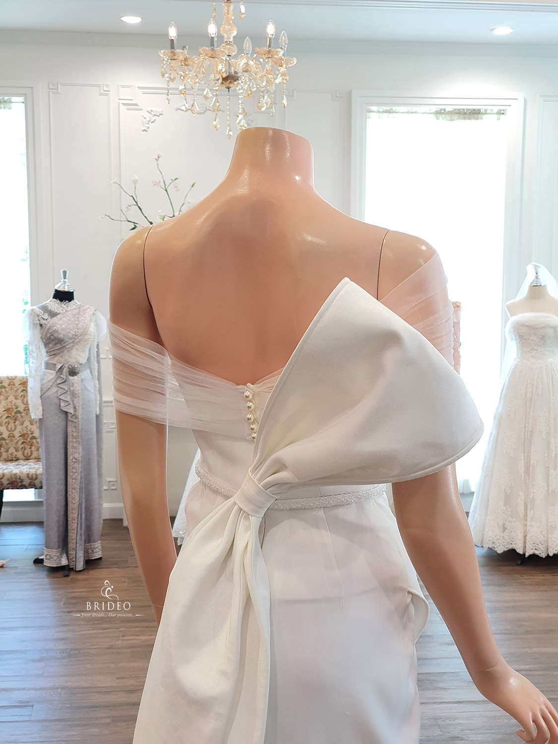 ชุดแต่งงาน minimal ตัดและตบแต่งปราณีต สำหรับบริการเช่า พร้อมบริการปรับ size ปราณีตราววัดตัวตัด หลังแก้แล้วอกเข้ารูปแน่นกระชับเพื่อให้เจ้าสาวสามารถเดินทักทายแขกในงานได้อย่างสวยมั่นใจในวันสำคัญที่สุดในชีวิต (สามารถวัดตัวตัดซื้อได้ในราคา 25,000 บาท )