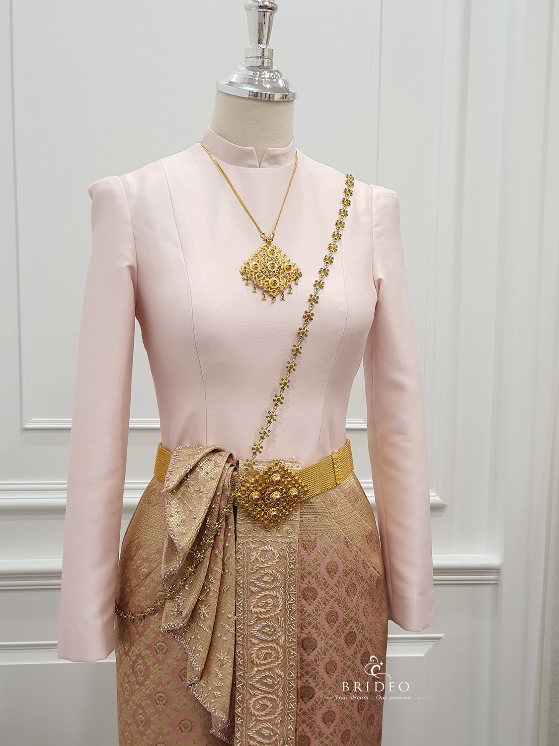 ชุดไทยบรมพิมานเช่าพร้อมบริการปรับ size ปราณีตโดยช่างมืออาชีพ และเครื่องประดับงานทองเหลืองโบราณ