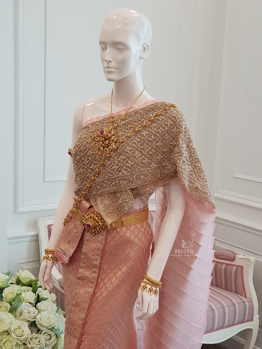 ชุดไทยสไบโบราณหรู (ชุดเช่าพร้อมบริการปรับ size ปราณีตและเครื่องประดับ)