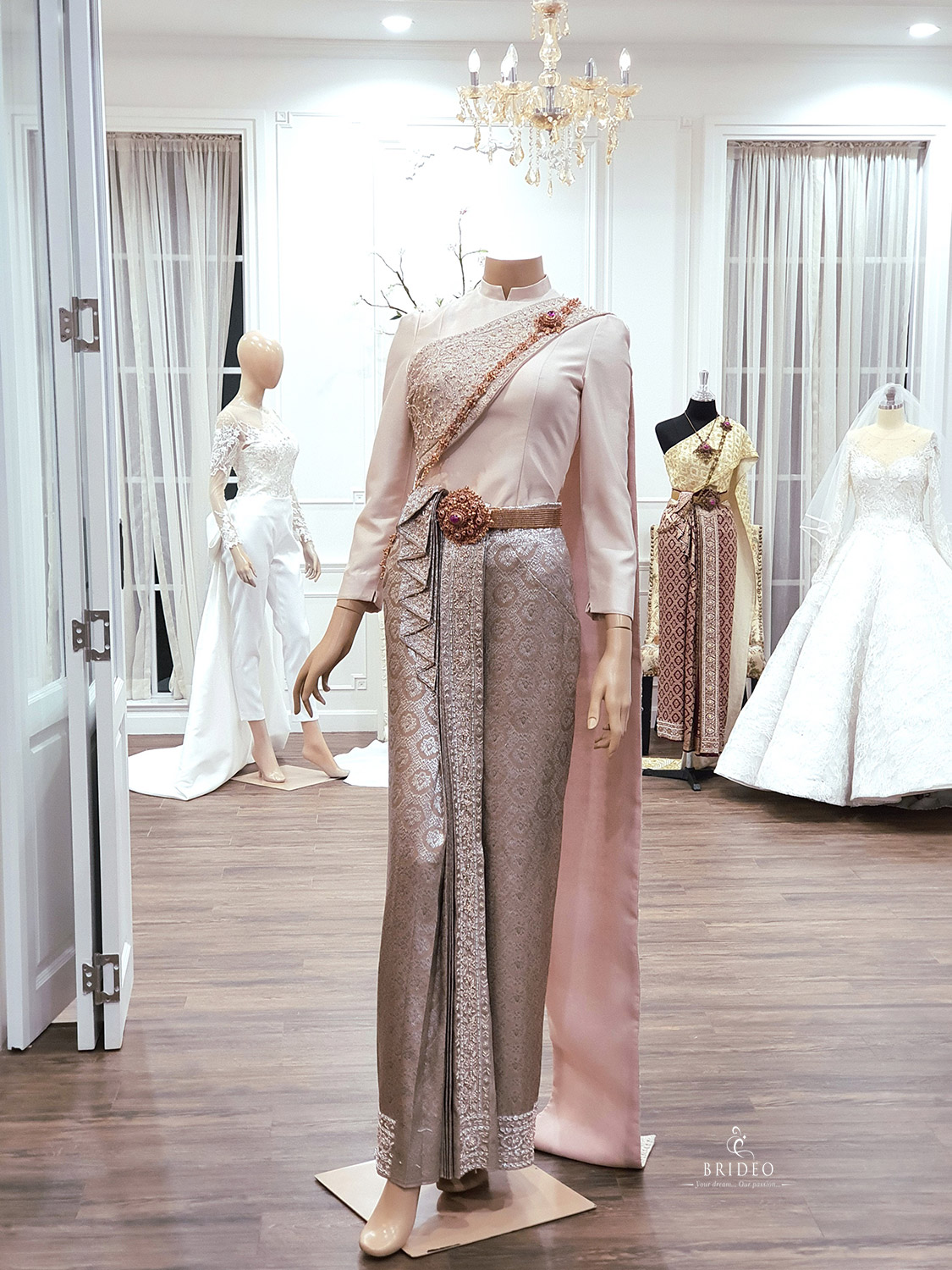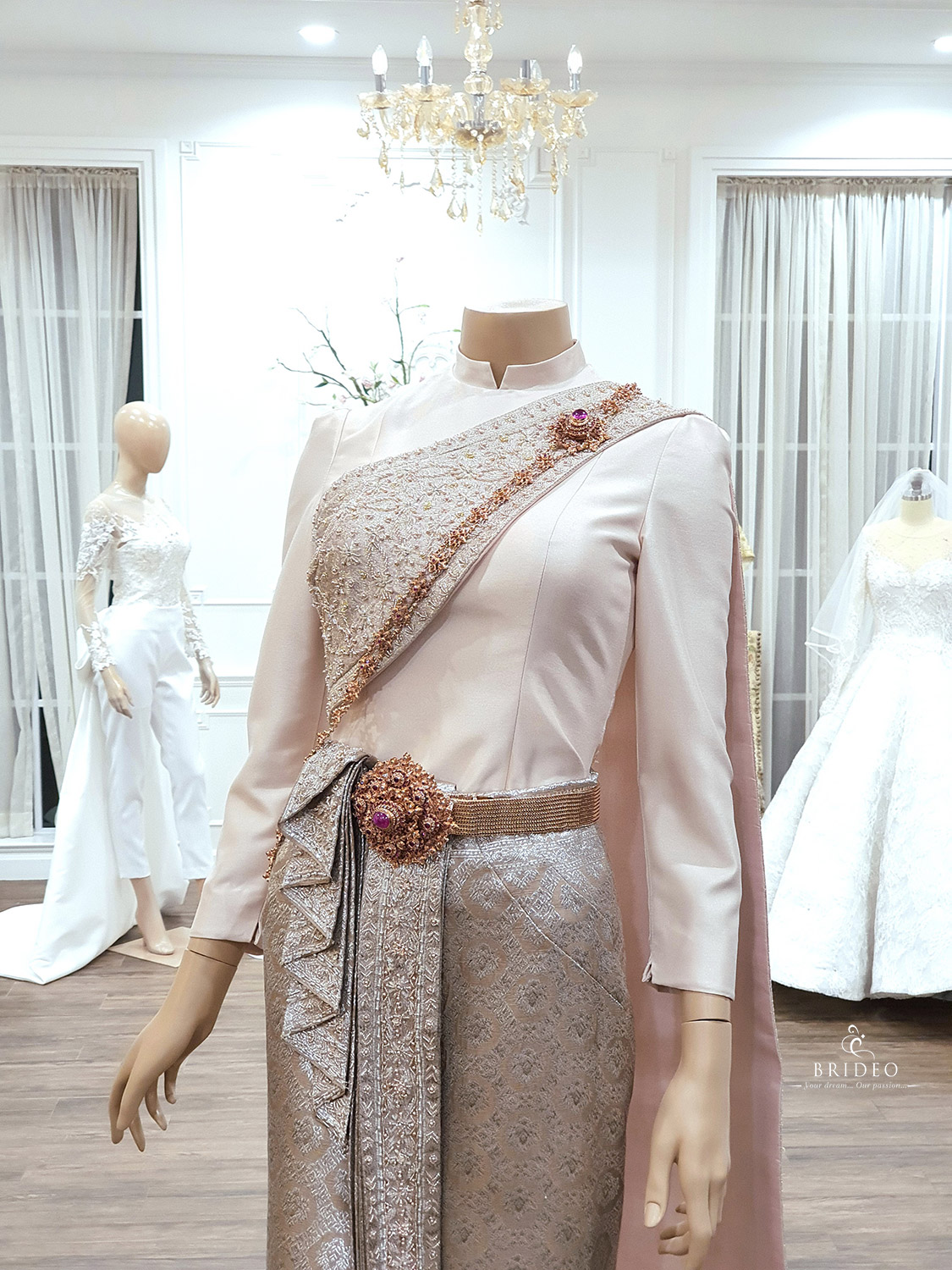 ชุดตัดปราณีต สำหรับบริการเช่าพร้อมปรับ size ละเอียดโดยช่างแก้มืออาชีพ และเครื่องประดับงานโบราณครบ set (สวมใส่ง่ายสะดวกสบายไม่ทิ้งเป็นภาระให้กับช่างแต่งหน้าในเช้าตรู่พิธีเร่งด่วน)